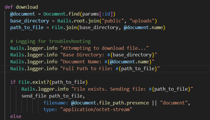 If we submit a request as a user with an attached document, the admin can download it. Looking through the source code, the downloaded file is actually served from the location of the user-supplied file name: