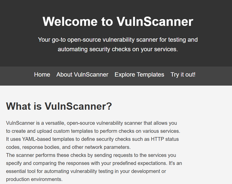 VulnScanner is our new open source project to help developers, security researchers, and bug bounty hunters identify attack surfaces! It's uses a flexible, customizable YAML templating engine to define web scans. We set up a website that hooks into a safe version of the scanner for demonstation purposes. That should be fine, right?