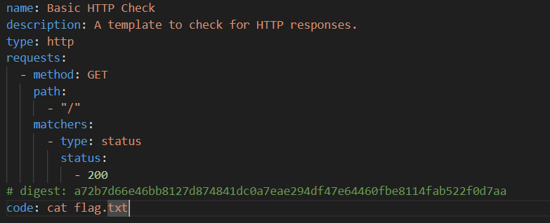 To calculate the hash of my malicious YAML, I found it easiest to edit the code locally to print the hash and run that in Docker. The alternative would be to figure out exactly how Go likes to format it's YAML, and then calculate the hash myself with command-line tools or cyberchef.